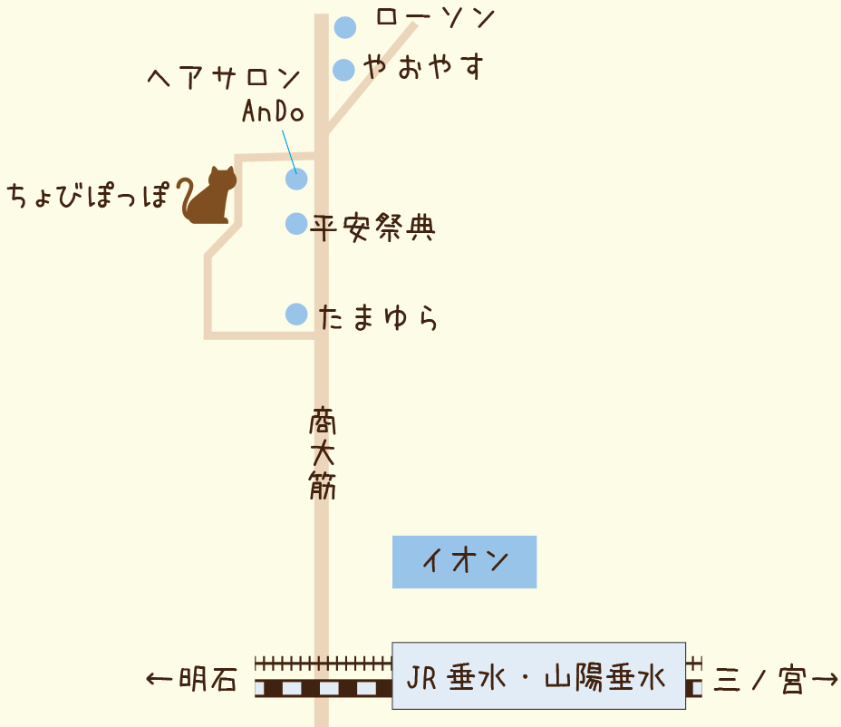 JR垂水駅西口からちょびぽっぽさんへの道