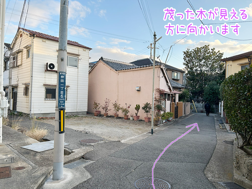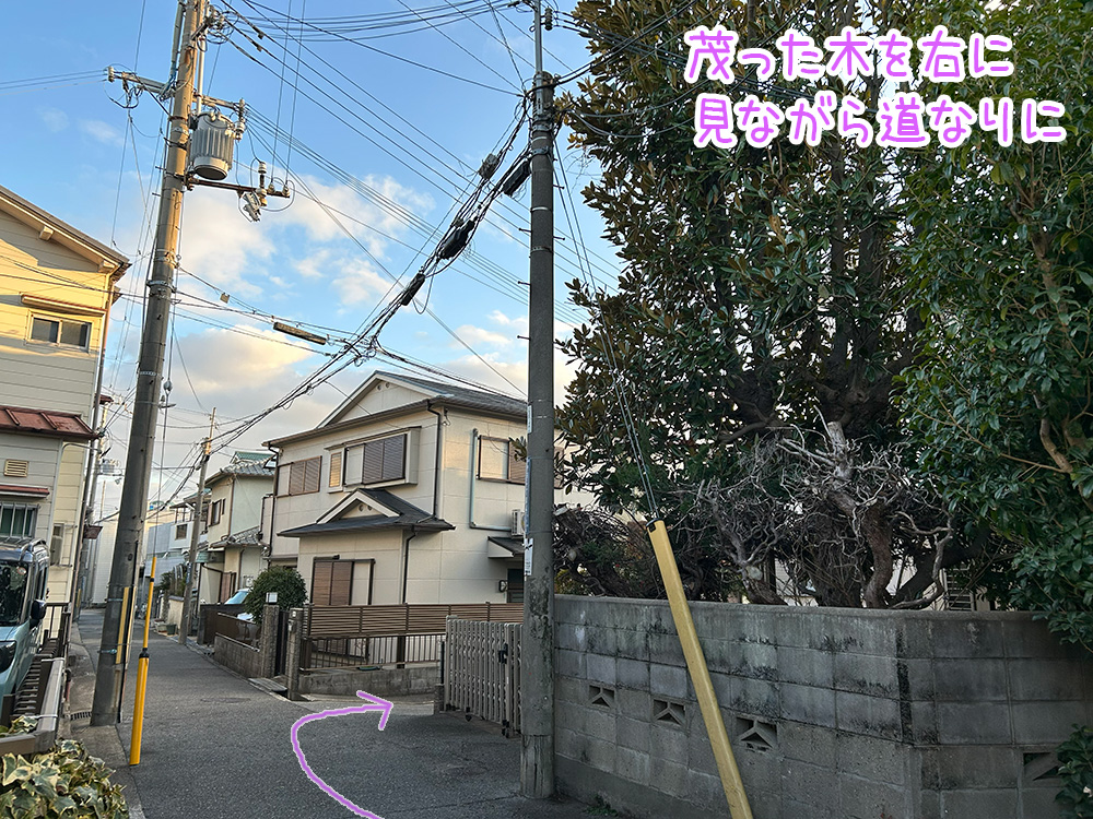 (ピンクの壁のお家があるほうに曲がります)