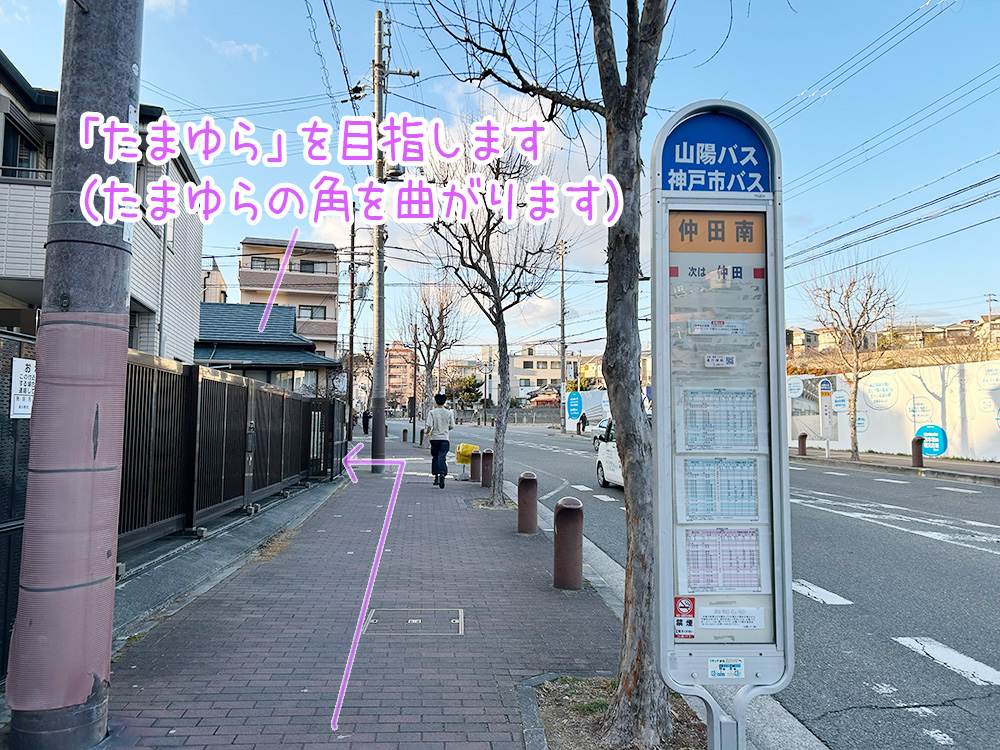神戸 垂水駅から徒歩7分の隠れ家カフェレストラン「ちょびぽっぽ」さん への道順です。