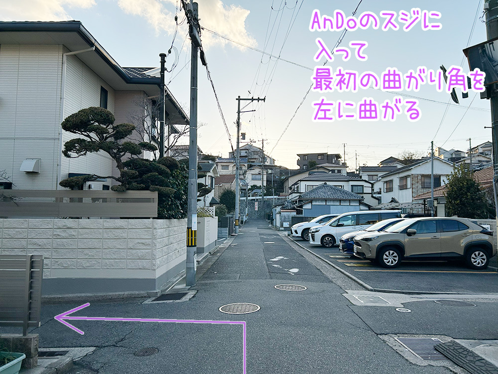AnDoのスジに入って、最初の曲がり角を、左に曲がります。