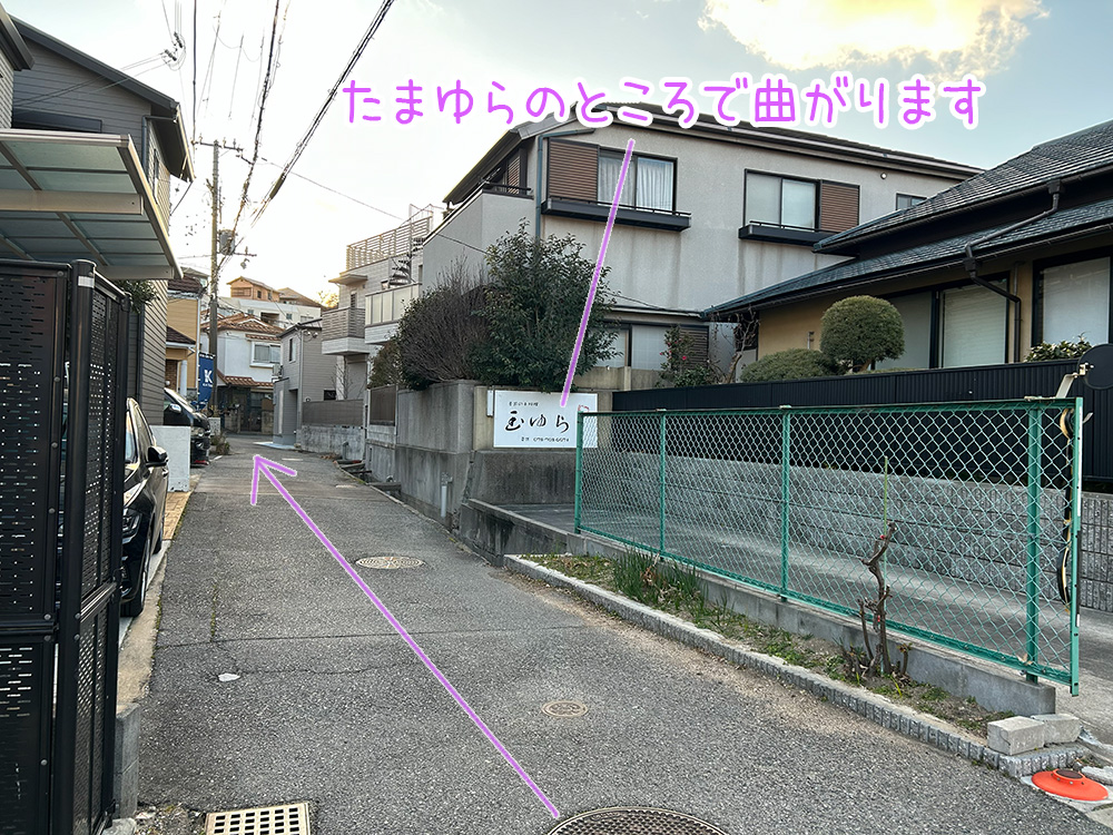 左手に「たまゆら」が見えたら左に曲がります。