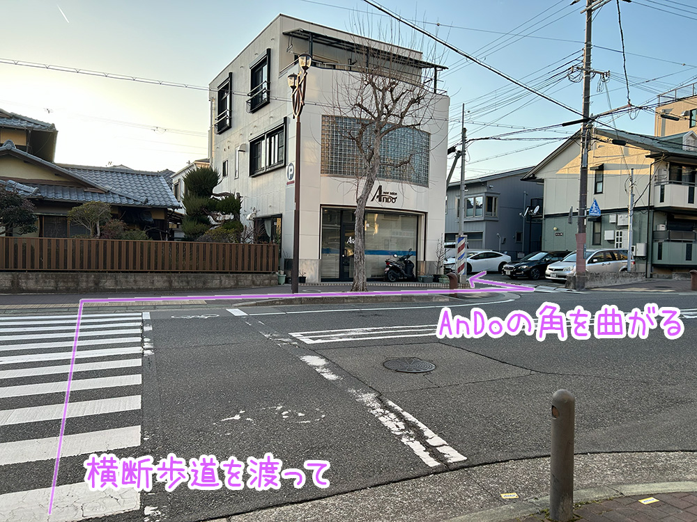 横断歩道を渡って、AnDoの角を曲がります。