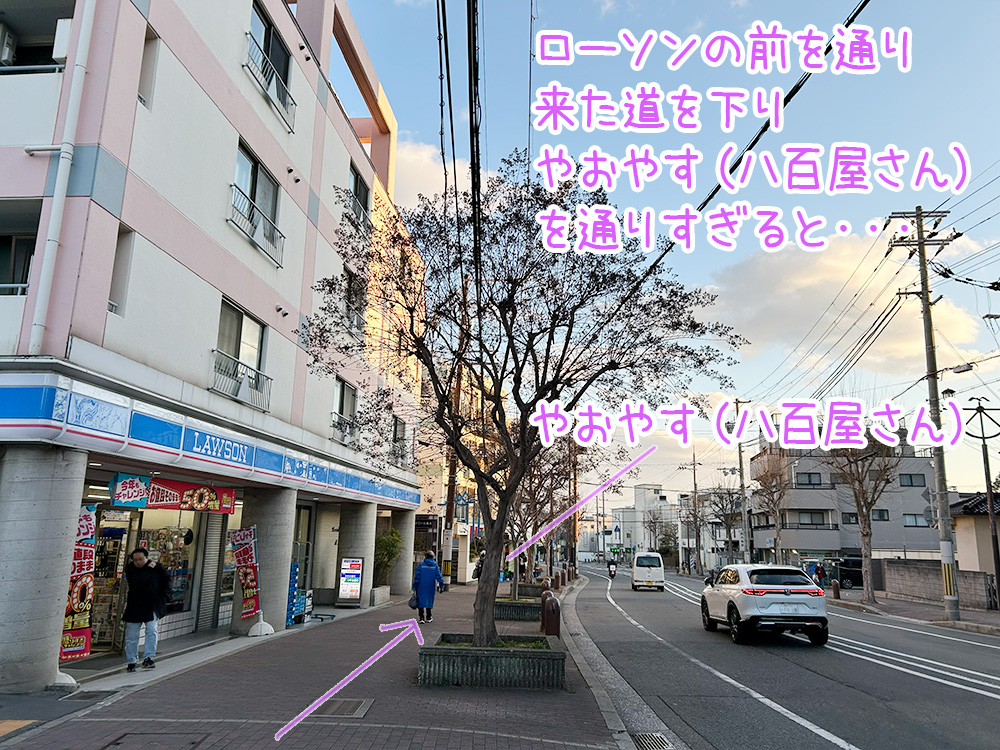 歩いてローソンの方向へ戻り(下り)やおやす(八百屋さん)の前を通り過ぎると・・・
